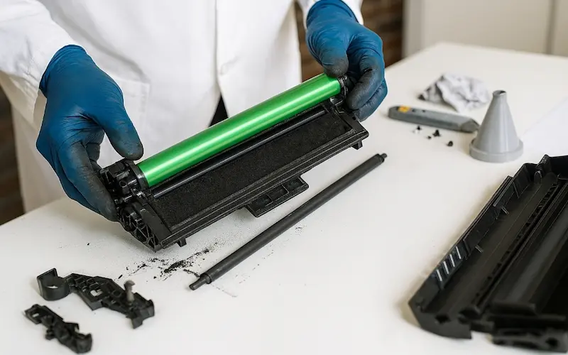 اگر کارتریج به صورت سنتی و بدون تنظیم دقیق وزن و دانه بندی تونر شارژ شود، آسیب به درام قطعی است.