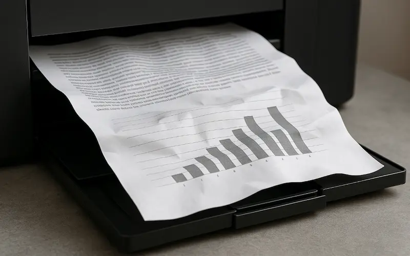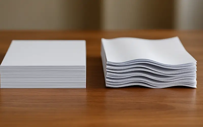 کاغذ ارزان یا خیلی نازک، با کوچک ترین شوک حرارتی یا فشار غلطکها تغییر شکل میدهد. حتی اگر رطوبت هم کم باشد، ضعف ساختاری باعث موج میشود.