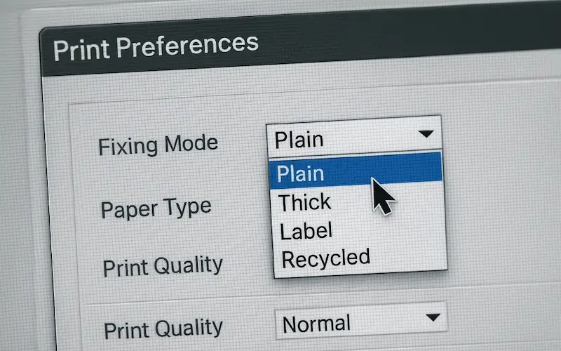 ۲.اگر گزینه Fixing Mode یا Fuser Mode دارد، روی حالت استاندارد بگذار.
